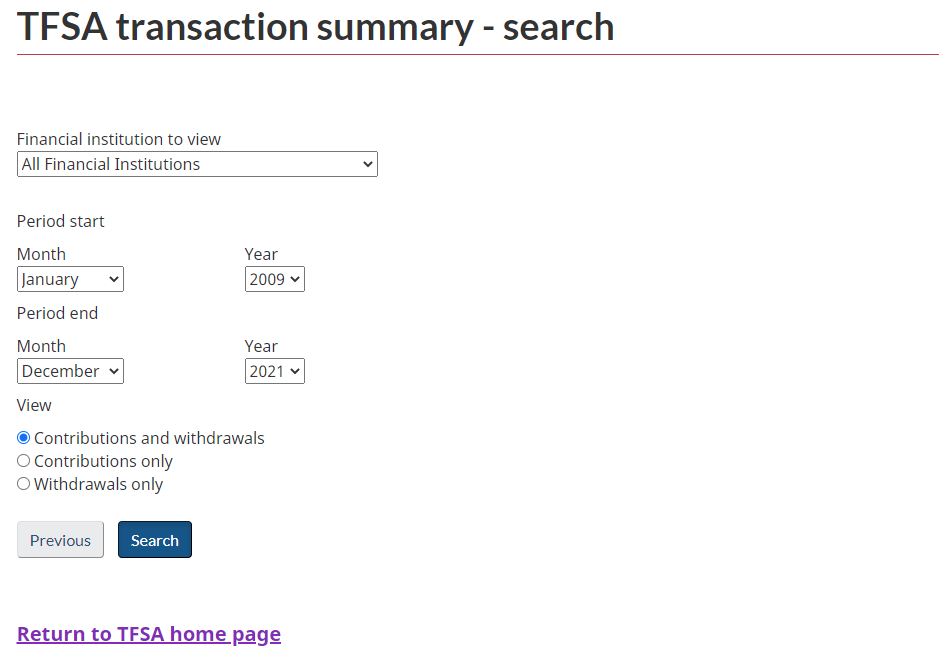 6. Click “Transaction Summary” and then "Next" to obtain your full TFSA contribution history